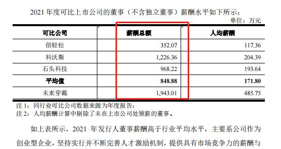 未来穿戴直接亮出了底牌,表示:“2021年发行人董事薪酬高于行业平均水平,主要系公司作为创业型企业,坚持实行并不断完善人才激励机制,提供具有市场竞争力的薪酬与福利,吸引具有丰富经验的相关人员入职公司所致。”